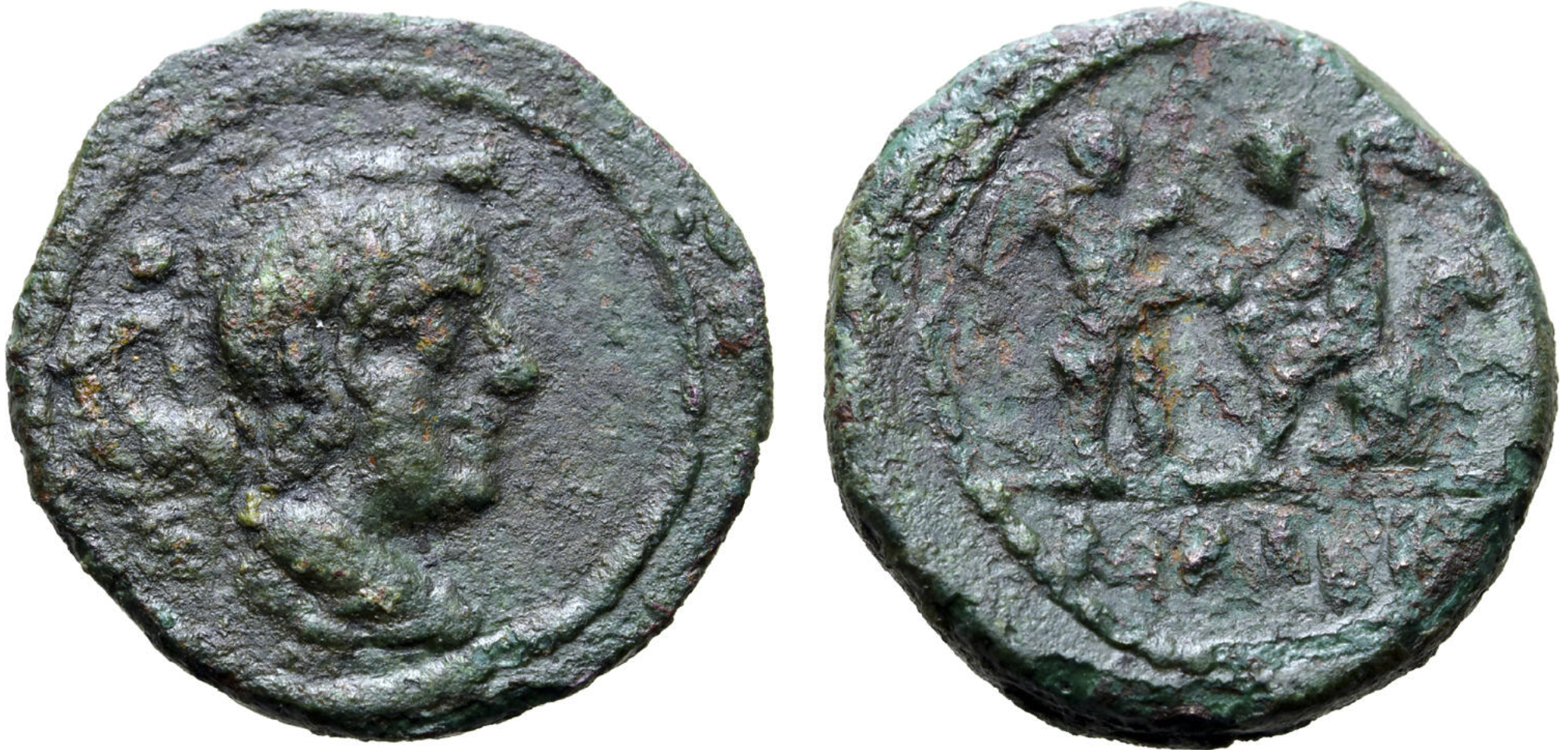 So maybe it is Cupid on that little uncia above, if this is cupid with nodus. Right now I should probably pull open my digitized copies of LIMC and check if Cupid ever gets this hair style in other media… Did that, nothing relevant under Eros and nothing under Cupid.