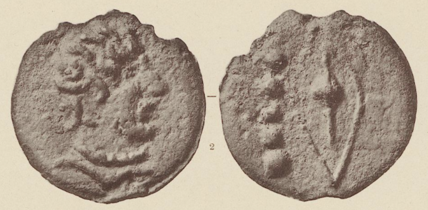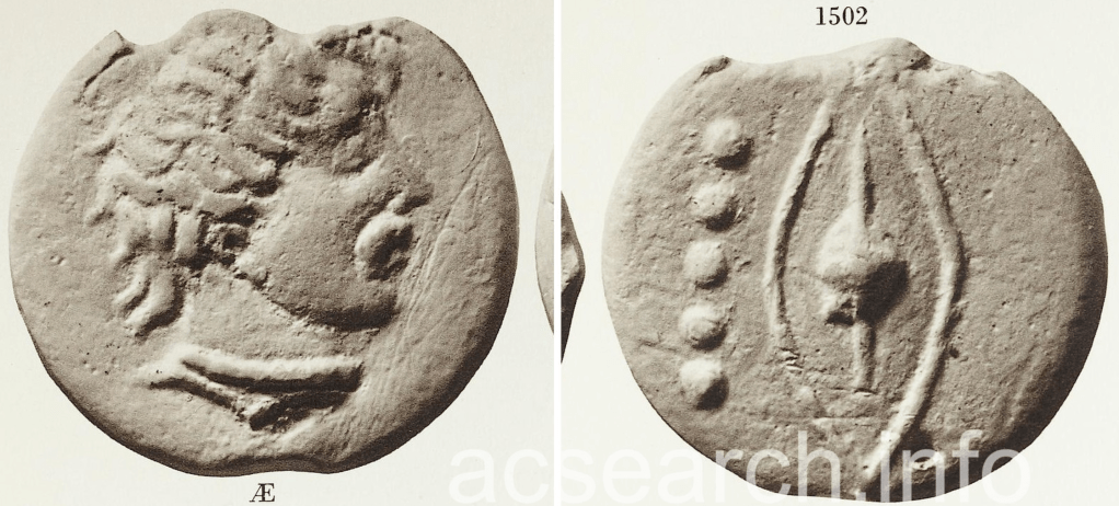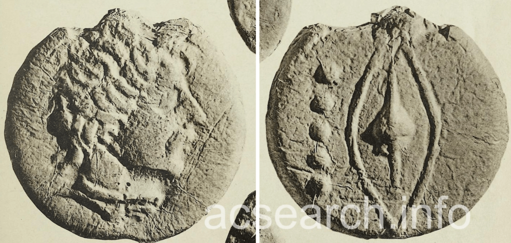 What follows are three images of the same Ariminium Quinunx specimen sold repeatedly in the early 20th century. As the photos are taken from casts rather than the aes grave itself the edges particularly the spue breaks present slightly differently.