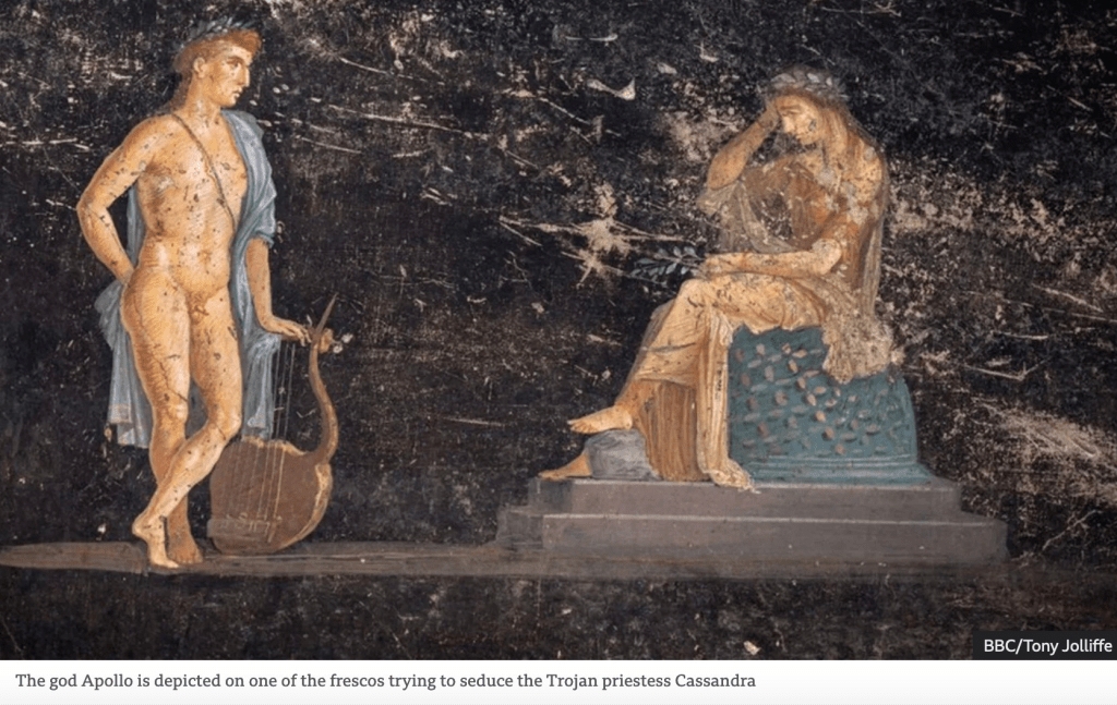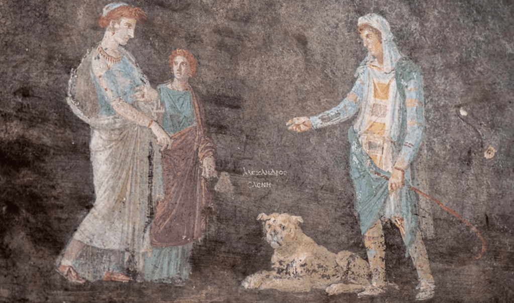 Things I love about this new Pompeii fresco showing Paris inviting Helen to Troy: