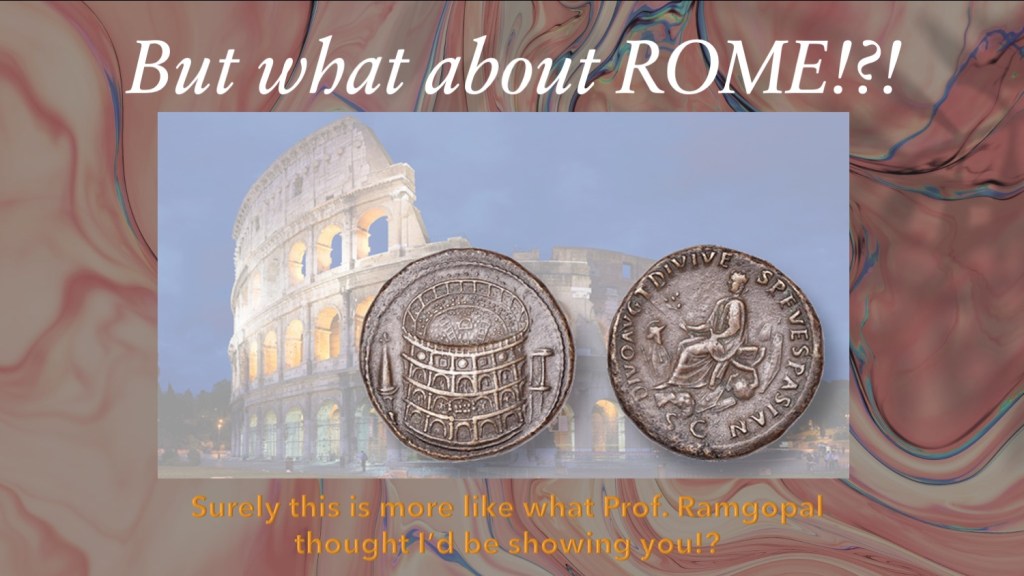 I was honored to visit Prof. Sailakshmi Ramgopal’s Roman history class at Columbia to give an introduction to Coins. I was asked to share my materials and when I do so I like to keep an archive here for future reference.