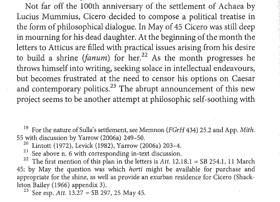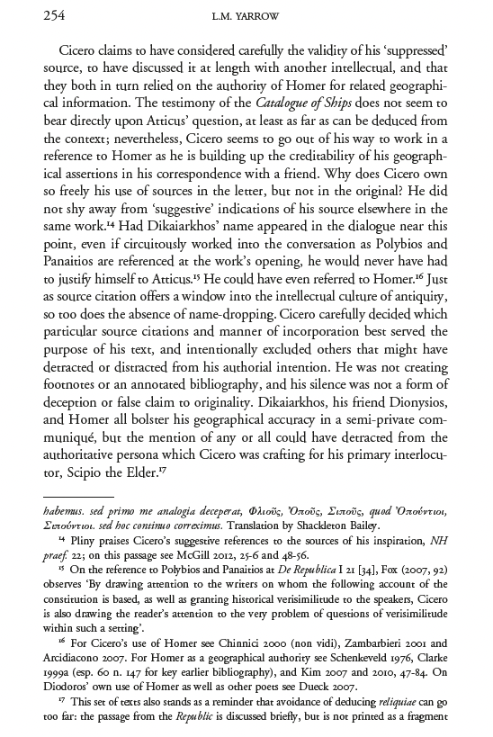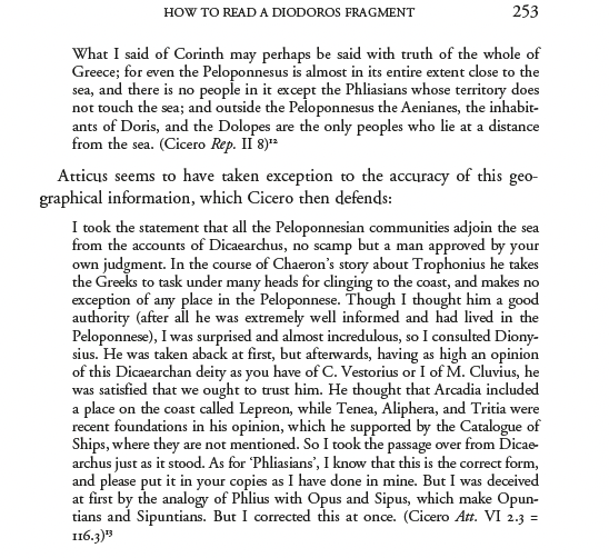 Anyway. I love this bit of my earlier writing. I think about it a great deal. In 2018 I published another deep dive in to Ciceronian knowledge making as a means to think about fragmentary texts. (Again a pdf is available here; look for Diodoros.)