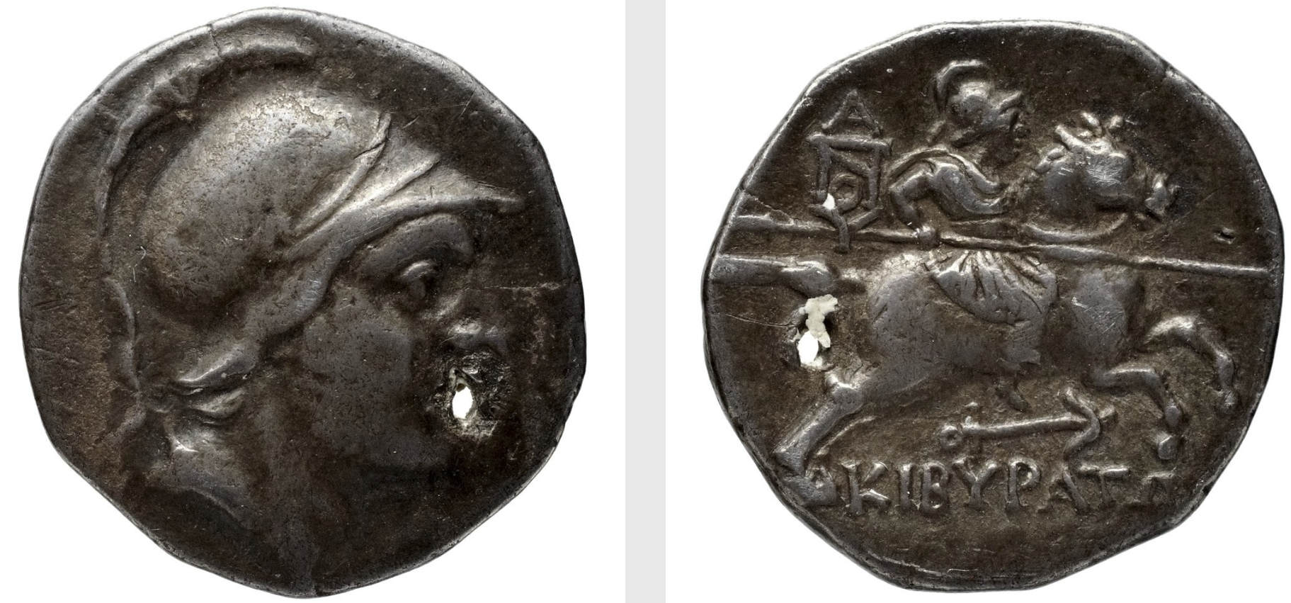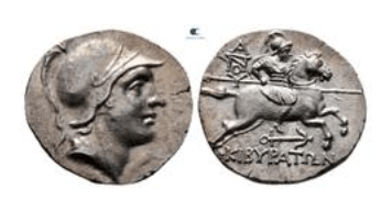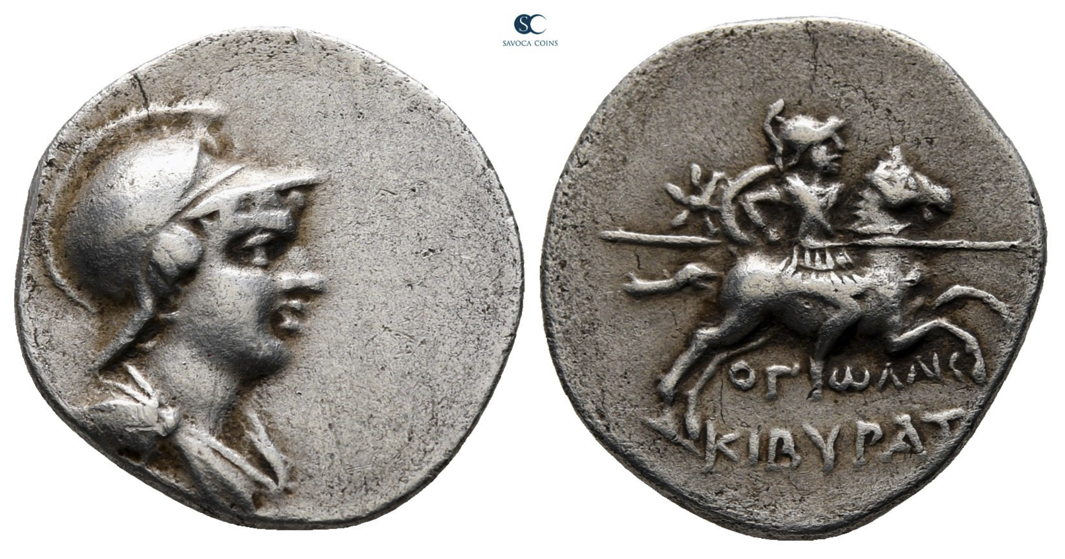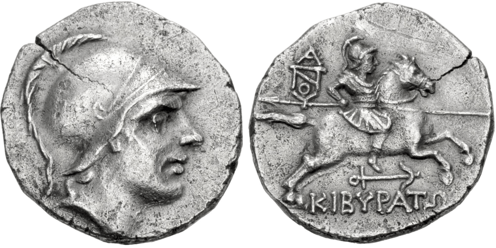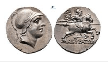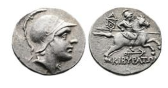 The silver coins of Kibyra (or Cibyra) are typically attributed from the establishment of Roman control of Asia Minor, c. mid 160s, to the Sullan exit from the region, c. mid 80s BCE. There is a tetradrachm and a drachm.