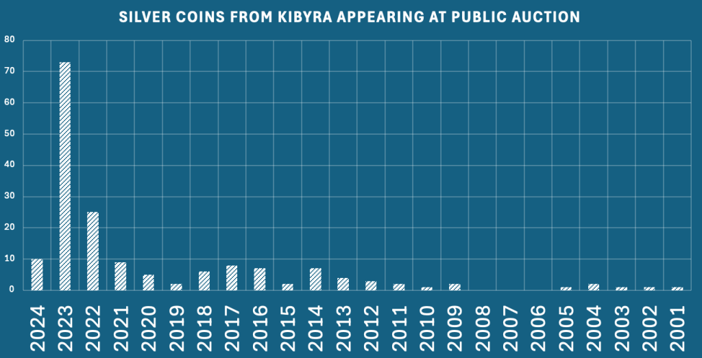 Since 2001, some 172 AR coins of Kibyra have appeared at public auction, yet before 2022, none with this monogram. There is an average of 7 coins per year over the whole time . But if we restrict the average to 2021 and before, the average is only 3 per year.