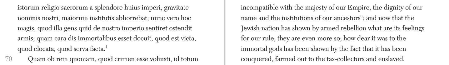 In the Pro Flacco the key question is the sending of tribute to the temple in Jerusalem and stopping it is good, in the In Vatinum Cicero leaves the Jewish element out of his rhetoric because he’s seeking to vilify Vatinus not the Jewish people. The senate bans the export of resources to Jerusalem from Italy in 63 BCE because Pompey is actively besieging the city in that year! One does not fund the enemy.