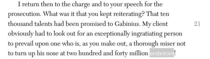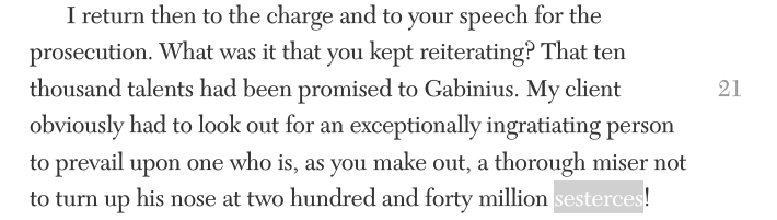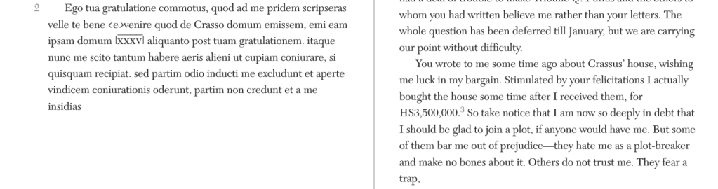 This follow up letter shows that Cicero wants the money to buy his house and that the loan is for some number less than 3.35 million denarii or that’s like 5 to 5.5 rhinos worth of silver. nothing to sneeze at.