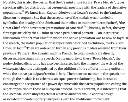My interest started from the reception of classical iconography of the clasped hands. This blog post is inspired by the image of the native leader wearing a medal. This is a key feature of the Morro Velho medals used as a form of slave control. Again discussed briefly in my 2018 article. I did go the UTAustin and read all the mine’s archival records looking for details of the production of this medal and have my own scans. It was a book plate engraver in London who made them not one of the major token/medal producers. I need to circle back to that project and get that published. Maybe the connection to early peace medals will get me more motivated to do that.
