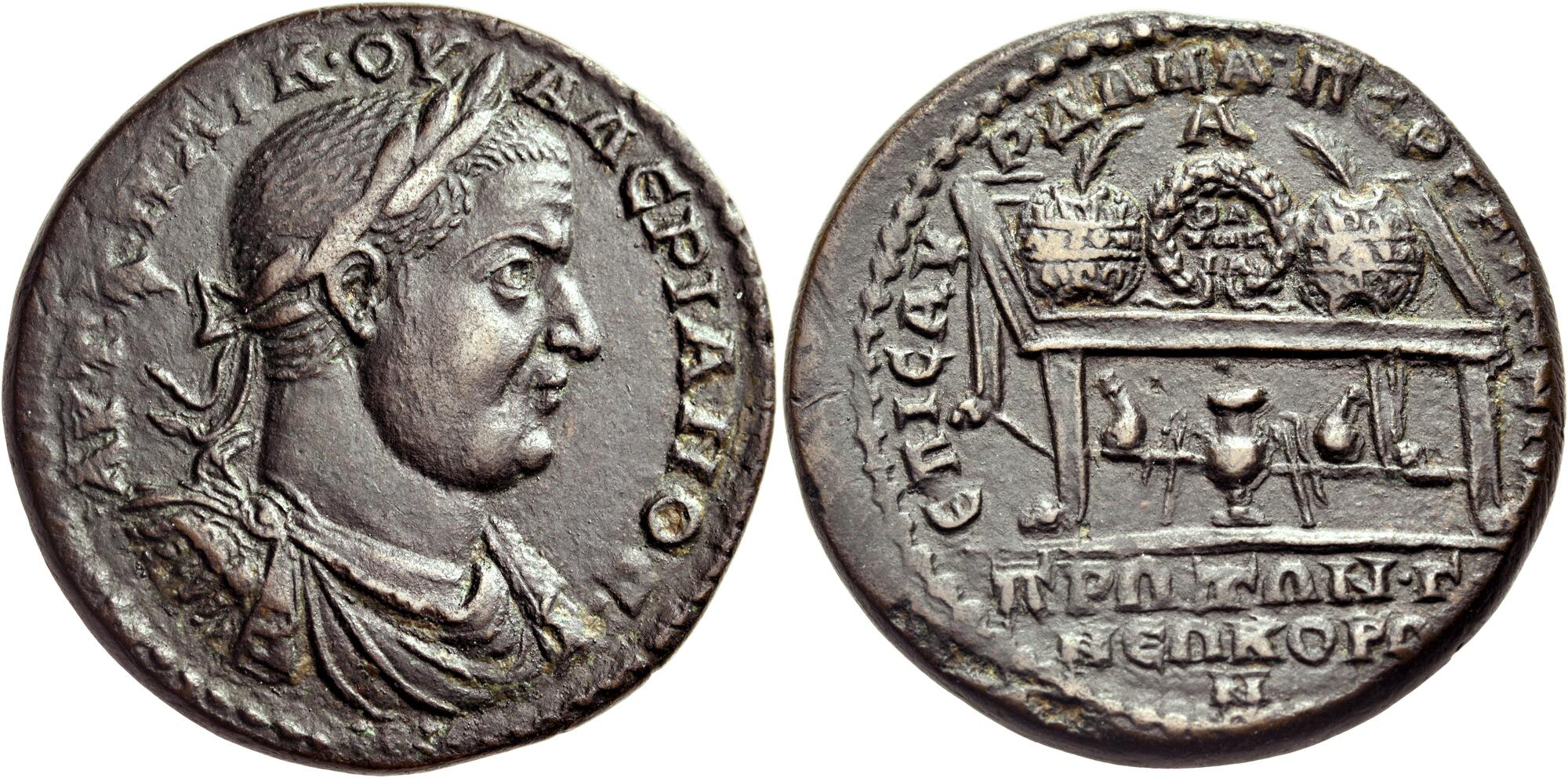 The prize crowns and palms on a table will be familiar to numismatists familiar with Roman provincial coinage (relevant results from RPC Online).