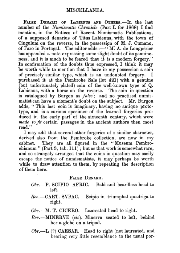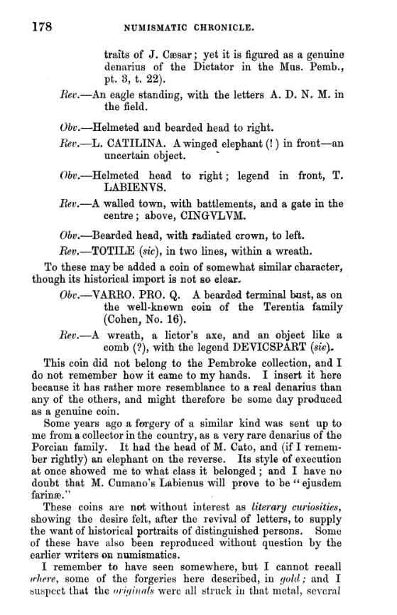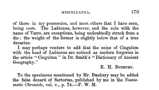 Bunbury, E. H. “False Denarii of Labienus and Others.” The Numismatic Chronicle and Journal of the Numismatic Society 8 (1868): 177–79. http://www.jstor.org/stable/42680462.
