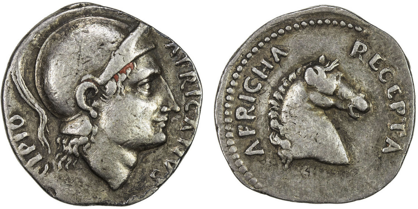 Scipio Africanus derived from early didrachms! overstruck on real denarius! last(?) auctioned 2020 and other example