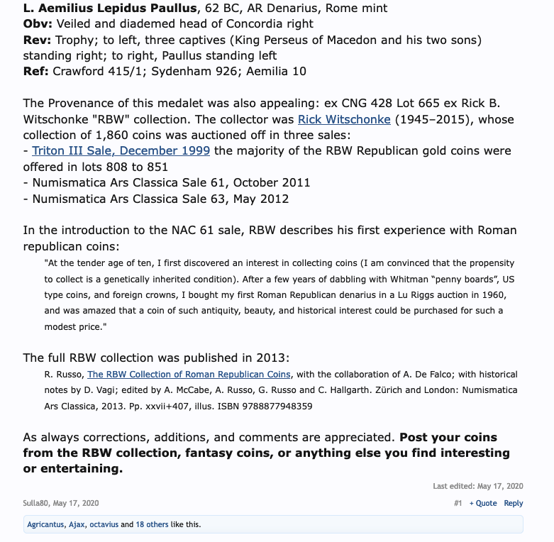 If you know things I should read on false or fantasy Roman republican themed pieces please do let me know. This is a sustained interest of mine. I don’t count in this category the Dassier RR series (a favorite of mine!) for all it may have fed a similar market or the Becker pieces as that seems more to be true forgeries. I’m looking for more along the Paduan line. Of educated knowing imitations. Just like what Bunbury discussed.