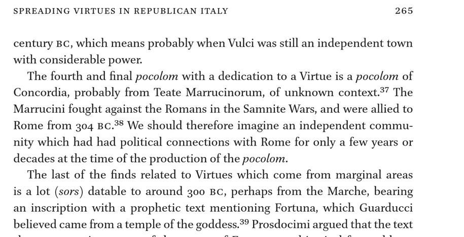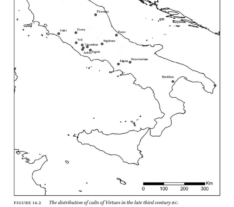 Miano, Daniele. “14 Spreading Virtues in Republican Italy.” In Processes of Cultural Change and Integration in the Roman World, 382:253–77, 2015. https://doi.org/10.1163/9789004294554_016. [accessed via paywalled digital copy in my college library].