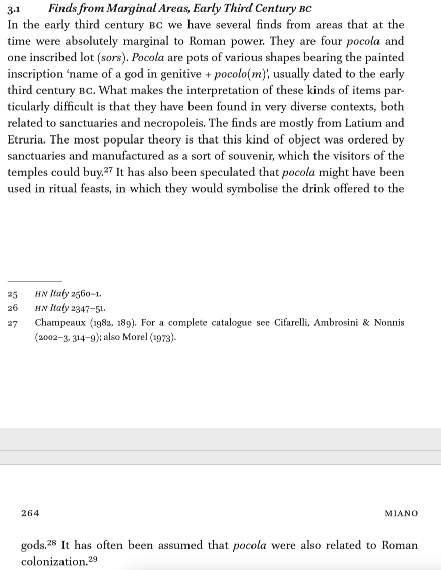 This is a great update to Clark! I’m super excited to read it. There is a real emphasis on emergence through out greater Italy in the 3rd Century BCE and then growth down through 1st cent.