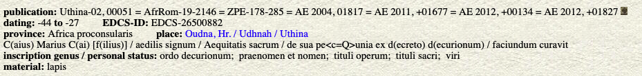 So is the goddess of RRC 366 Aequitas? I think it highly likely. We believe that Aequitas has cult in Latium from the first third of the third century BCE based on a tomb find at Vulci with an early Latin inscription. We know again from epigraphic evidence she was worshiped at Urbs Salvia by the end of the first century BCE and that might go back to the second century foundation of the colony, but that is only speculation. By the end of the first century a C. Marius, son of Marius, was improving the goddess’ cult in the north African colony of Uthina. Cicero doesn’t invoke the goddess, but as an abstract virtue it is all over his writing. A rhetorical handbook of c. 80 BCE makes a point to define it: