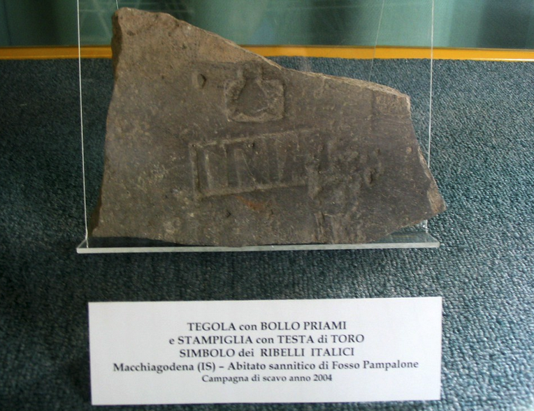 The image might be an upside down bull, it might be a helmet. Either way I’m not sure we can associate it with the Social War though Oscan language use does tend to end with the war.