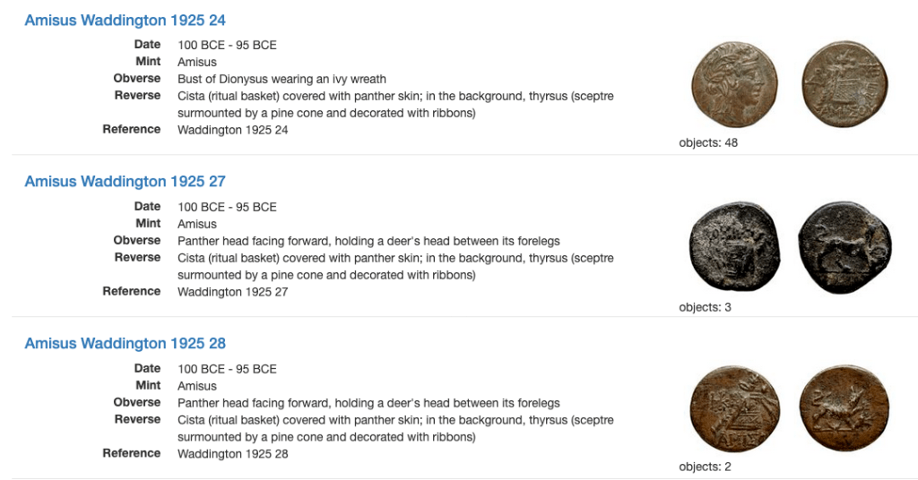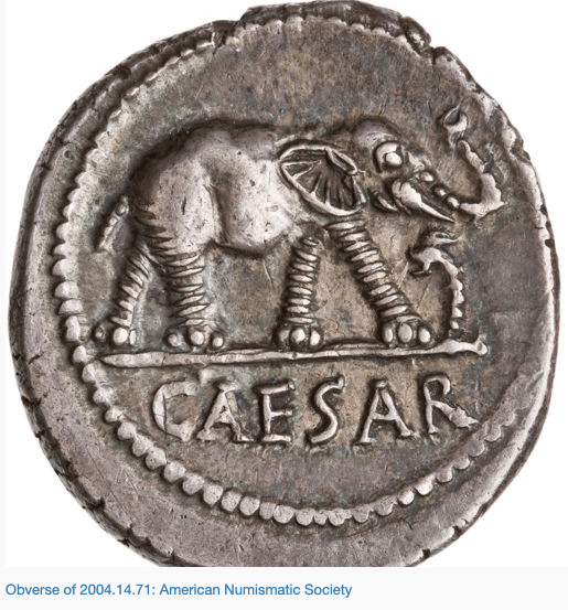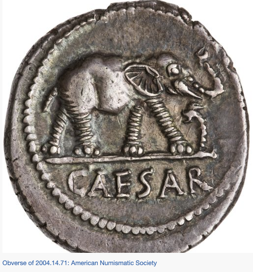 And less so but also Caesar’s Elephant and Snake (RRC 443/1), I think here is is how the stag on the Amisos coin blends with the the exergue line like the snake.