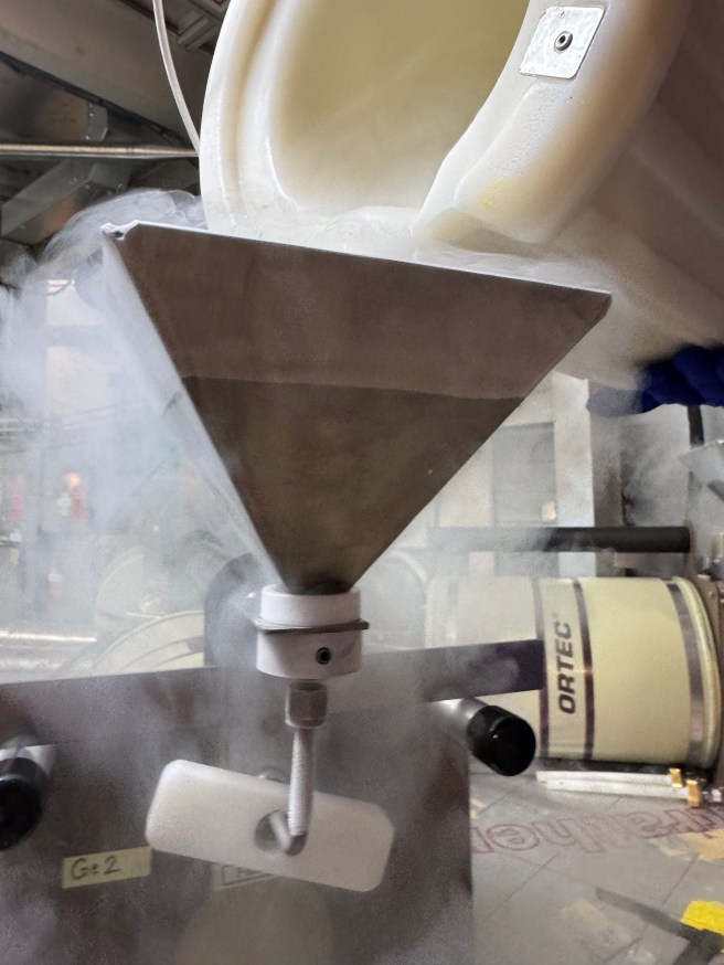 In our experiment we used germanium detectors. No, not the flower, geranium. Germanium, it turns out, is an element. A super sensitive and useful one at that. We had four detectors total. Two more sensitive, two less sensitive. Frankly, I ended up being very fond of the less sensitive as it was easier to understand the preliminary results. These detectors had to be cooled by super conductors. Electrically cooled superconductors can produce minor vibrations, and with muons this is a no no, so we used nitrogen cooled ones.