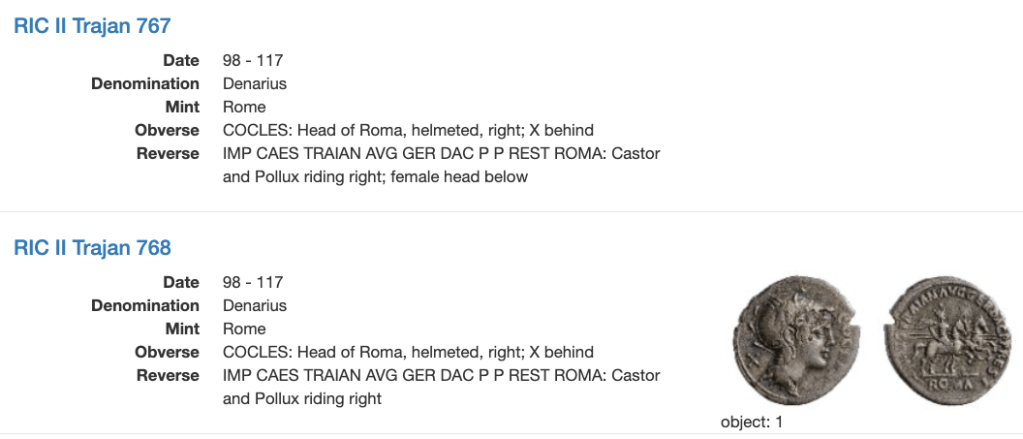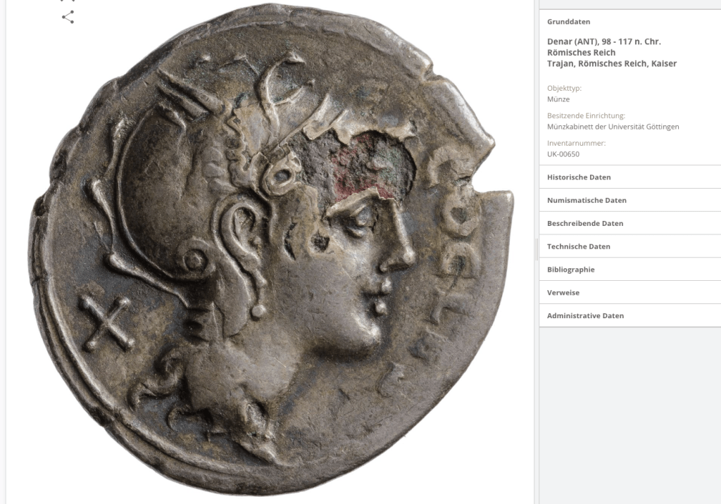 The fantasy denarii is apparently inspired by the restored type attributed to Trajan’s reign but I’ve seen no examples of verified specimens of the restoration coinage either. I don’t have