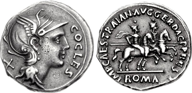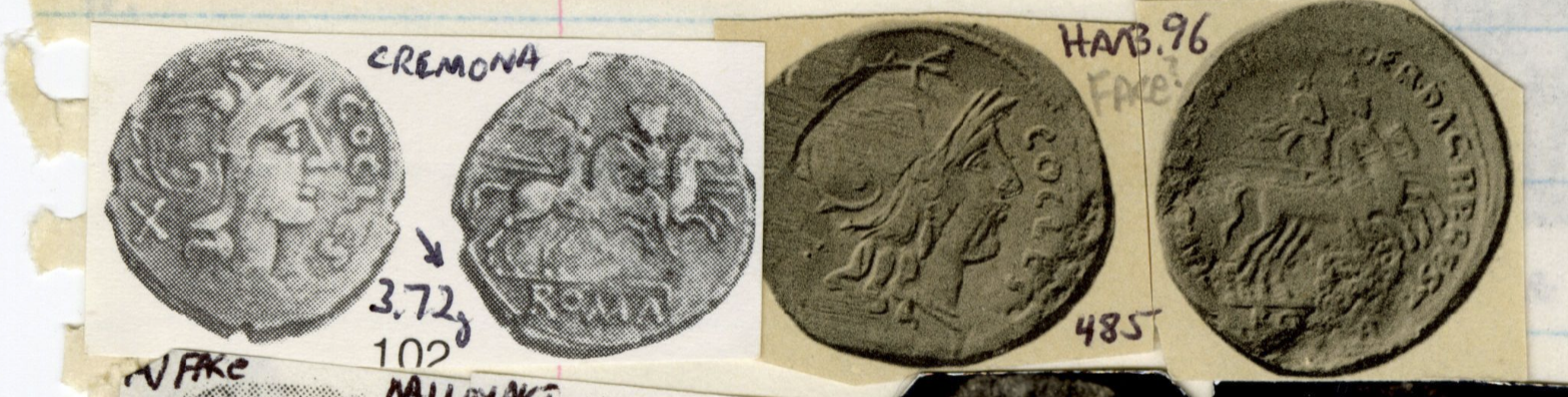 The vast majority of circulating COCLES coins, at least all those without the female head in the field, are modern forgeries; see the compilation in Komnick TE. 23. The Becker forgery (Hill, Becker No. 164) in particular often goes undetected; see, for example, Milan, Belloni 181 or SBV 30 (September 15, 1992), 201 (3,45).