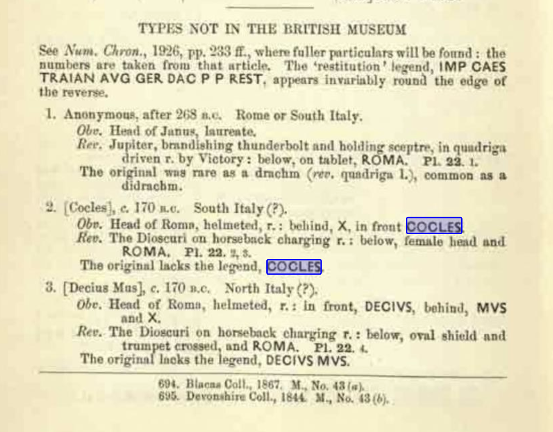 on my shelf but I just ordered it so when it arrives maybe I’ll fill out this post with whatever I read in there about Cocles. Here’s what is in OCRE: