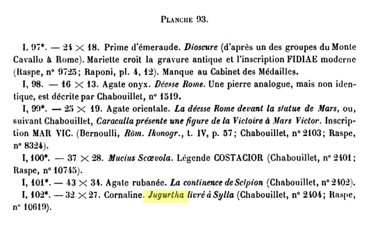 The same volume contains an illustration of a early modern gem on the theme of RRC 426, the surrender of Jurgurtha to Sulla, a gem now in the BnF.