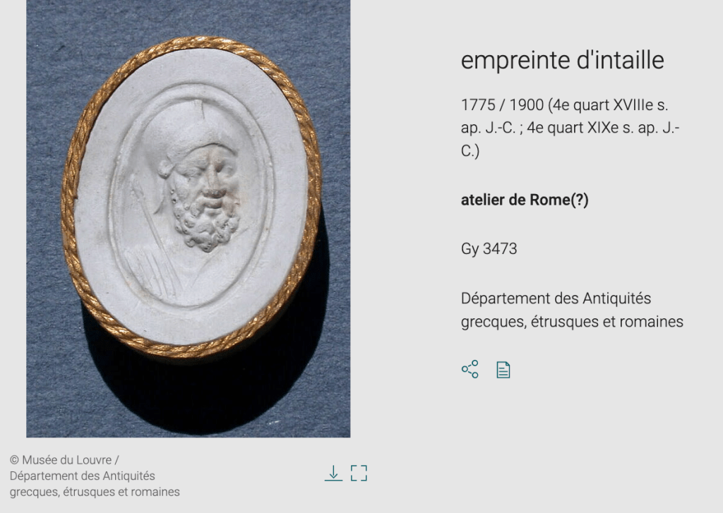 Above we have a cast of gem from the Medici collection now in Florence, of the original the Louvre catalogue says: