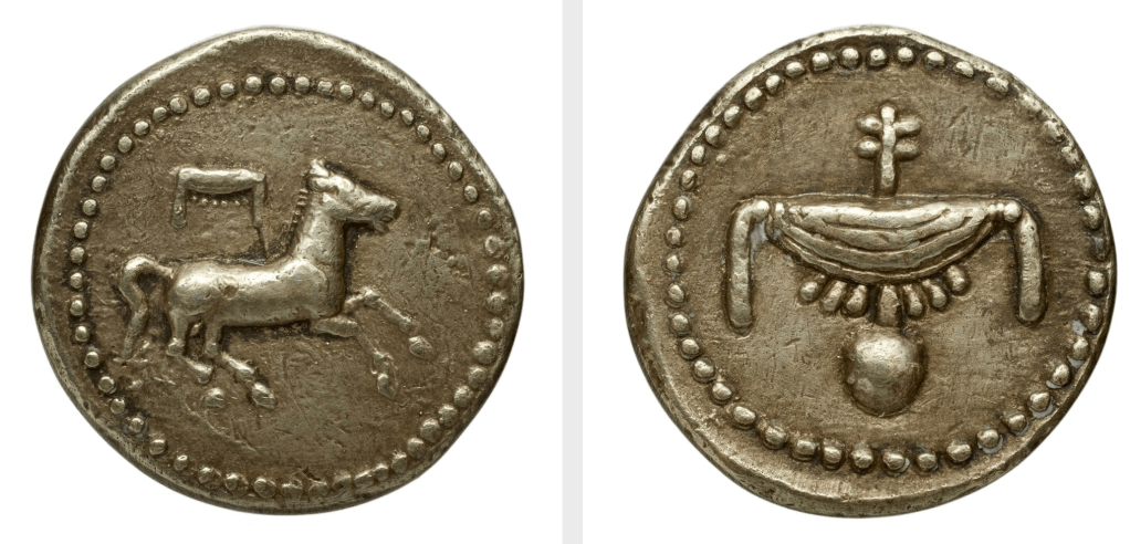 We’re mostly comfortable with the idea that a coin must be spendable within the dominant denomination system even if that system derives from the ‘enemy’ or ‘other’, but it is still nice to have parallel examples. Think of the allies denarii of the social war, or Rome’s early didrachms. I’m sure there are other examples as well.