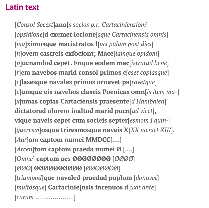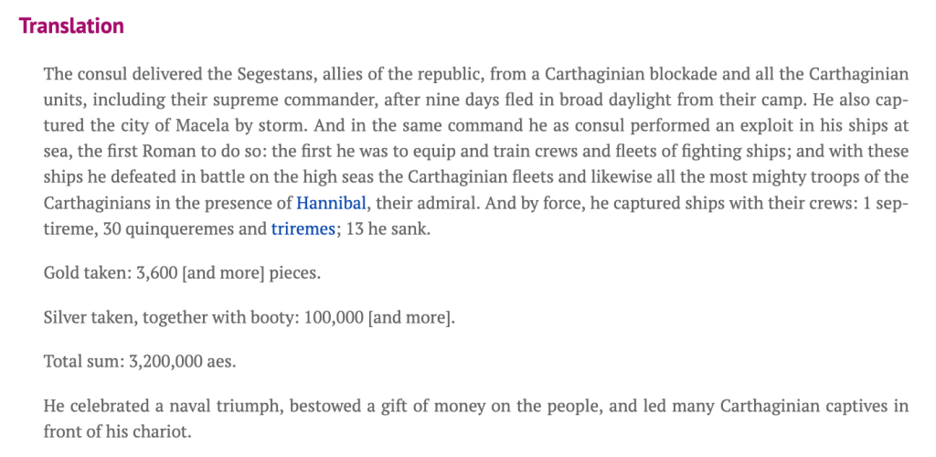 Text and translation from Livius. I however hold that inscription is based on a 3rd century BCE original and is not an Augustan fantasy, only a restoration. I discuss it building on the views of Eric Kondratieff first in a 2014 blog post and then more extensively in my 2021 PR journal article.