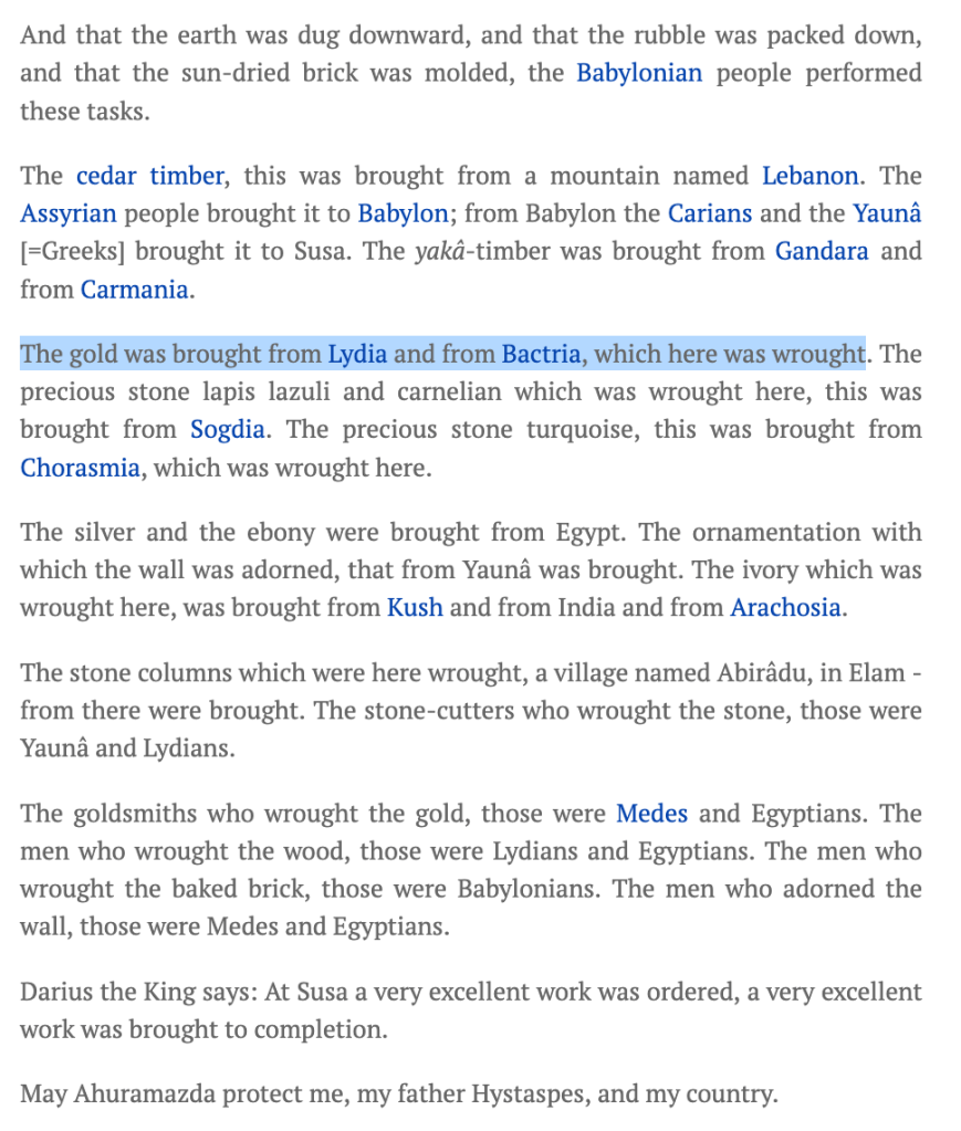 Again as the authors point out this corroborates epigraphic testimony that Bactria supplied the Achaemenids with gold.