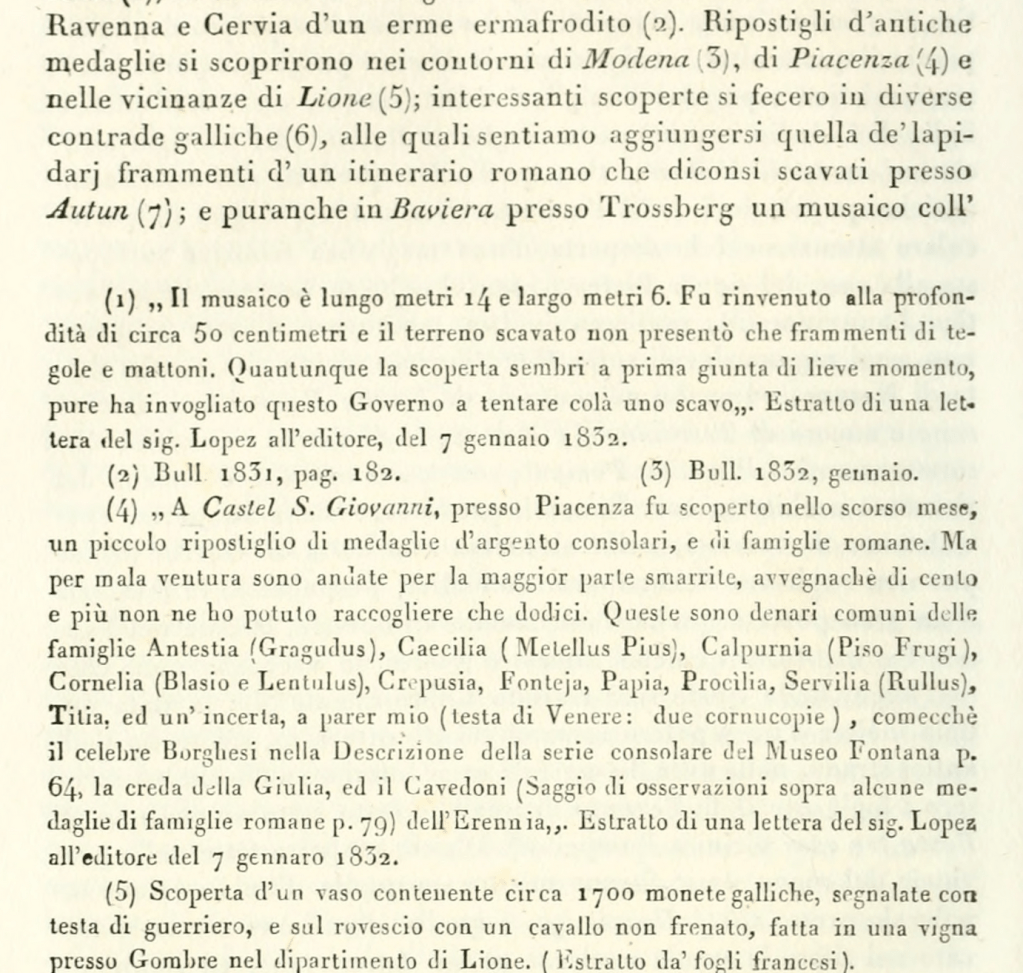 Early in this volume we had mention of coins (bronze, silver, gold) being found by ordinary people around Orvieto and sold to a local enthusiast but with no significant details of interest. There was also a long lovely account in Latin of a “new” type deemed to be of importance to the history of Catania. While I found the language interesting, I wasn’t moved to dig further as not really my area.