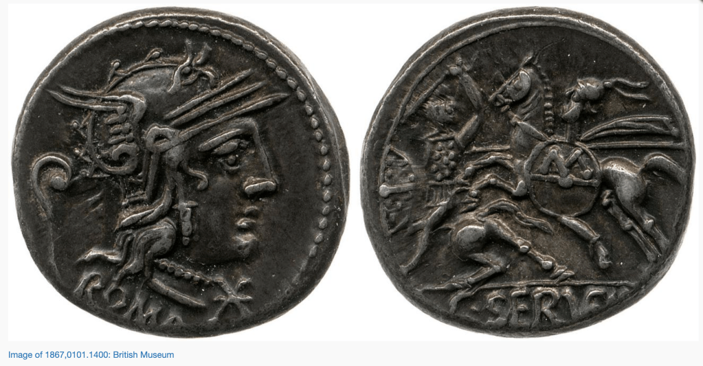 I’ve often wondered if RRC 259/1 was an alternate depiction of the Tremulus statue (cf. my 2021 book, pages 64-69) rather than just Tremulus the man, but I have been convinced that the dynamic motion with spear would be too unusual for a statue as the other representations on later coins are so staid and calm.