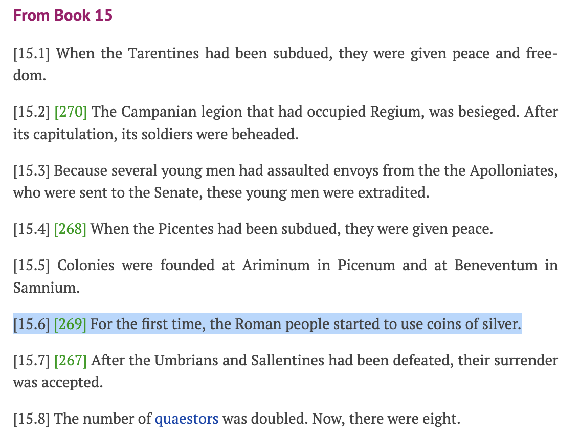 Livy Per. 15, echoed in Plin. NH 33.44
