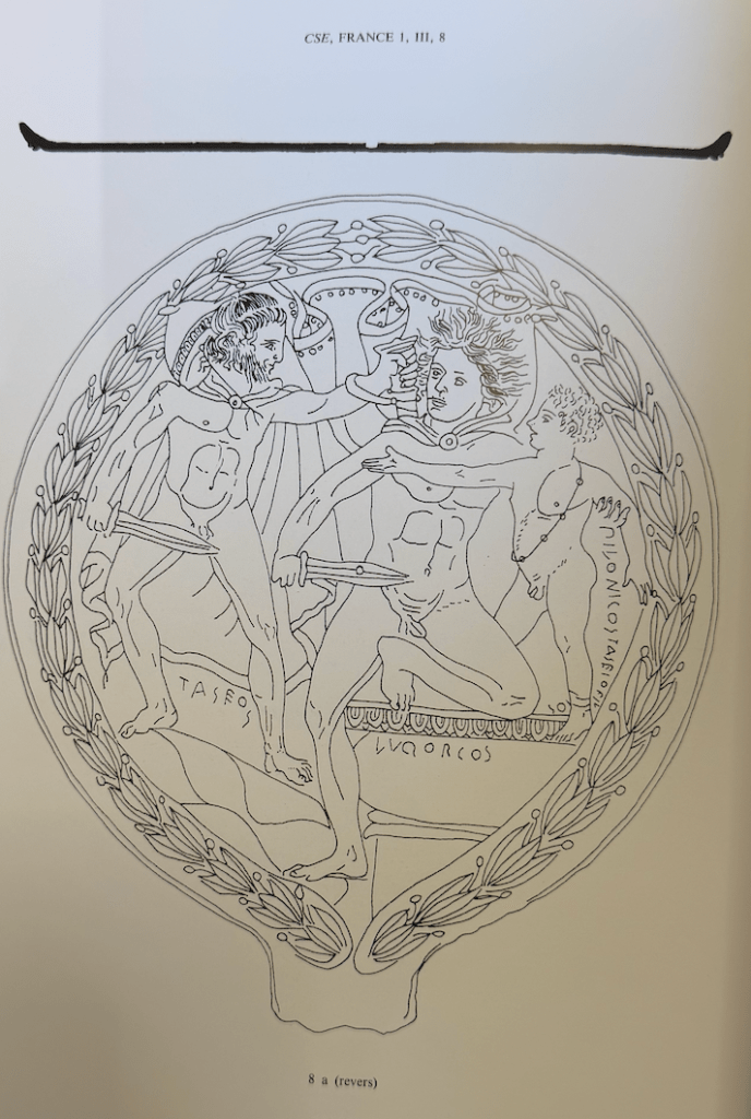I decided that I didn’t feel confident in talking about the Bolsena mirror with wolf and twins because while I love the genre of Etruscan mirrors I’ve never made a systematic review of them, just oooo-ed and aaaah-ed as I went along. Think of it like how your perspective changes on a coin when you sit down and work through trays and upon trays of coins with in a given series. Or how great it is just to go through Schaefer’s Archive or the CRRO examples to see the range of renderings. It’s the type of visual expertise I pride myself upon and continually seek to continually develop and refine.