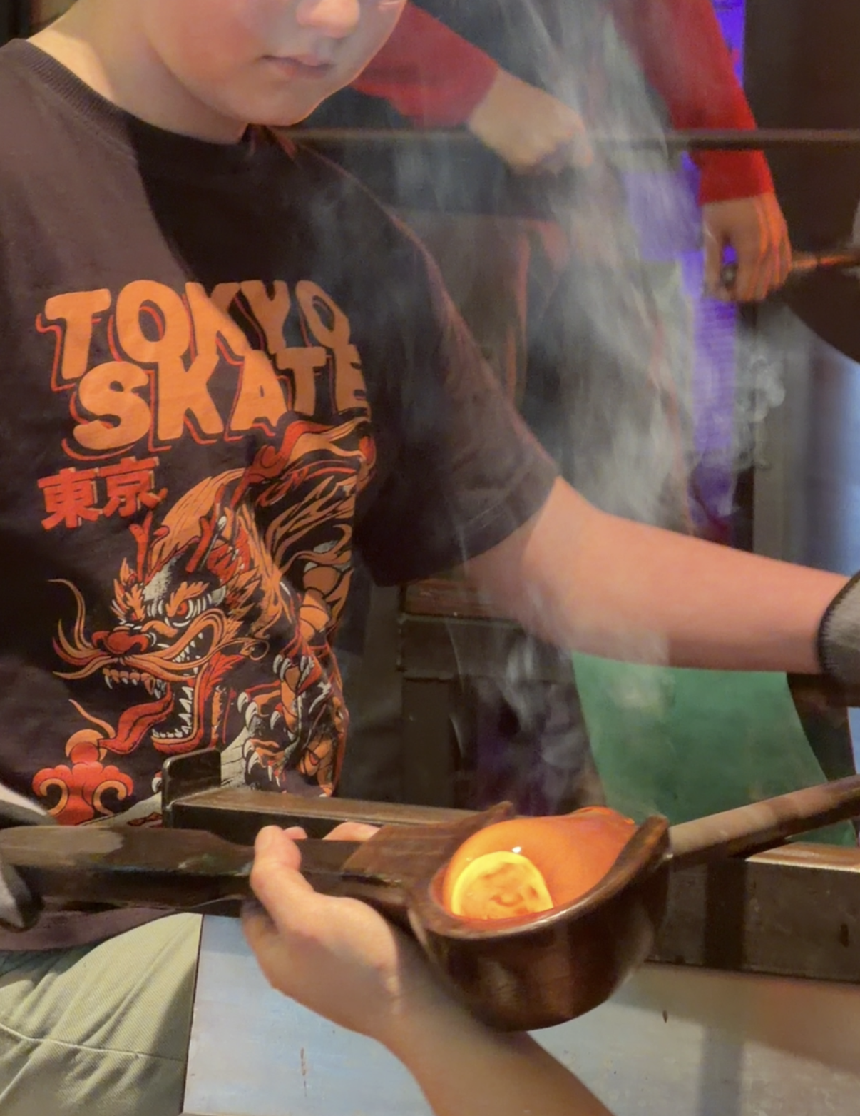 Why yes! My almost 11-year-old kiddos did just make glass paper weights yesterday and we cannot pick them up until Wednesday as they have to sit in the kiln to cool properly for the colors to form and cracking not to occur. And yes, the whole time I watched all I did was think about ancient manufacturing processes.