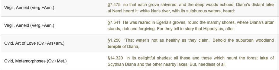 This clearly suggests a relationship between the sanctuary and trees, as do the more poetic references by Vergil and Ovid (topostext link)
