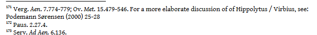 cf. Pena, María José and Oller, Marta. “Hipólito y Orestes en el santuario de Diana en Nemi: contaminaciones mitográficas antiguas y modernas : análisis crítico de las fuentes literarias.” Latomus 71, no. 2 (2012): 338-372.