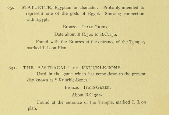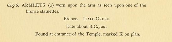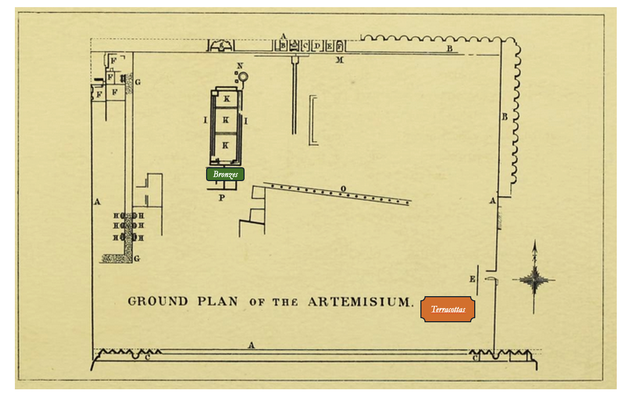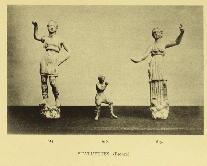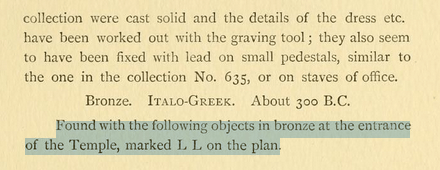 Frustratingly there is no account of where the bronze statuettes were found when they are discussed, but below there is an account of where some were found.