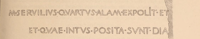 This noblewoman must have erected other monuments and offered other gifts within the ara (altar) executed by M. Servilius Quartus. Her name appears once again on a marble plinth, broken in half: