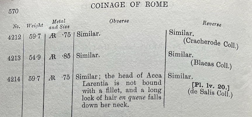 Grueber 1910 (repr. 1970): 569-570 has deliciously erudite footnotes! And yet, like so often he doesn’t explain the theories he’s dismissing. I know they are wrong and so does he, but what a lot of work to make others dig through. It makes me slightly more fond of Crawford’s dismissive asides as he condemns his predecessors. at least I know where he stands and where to look.
