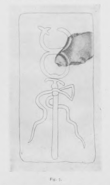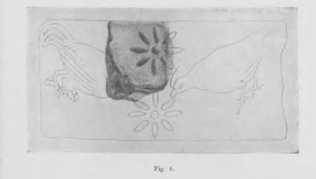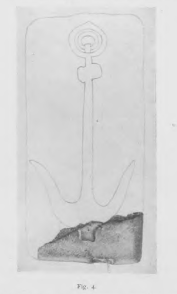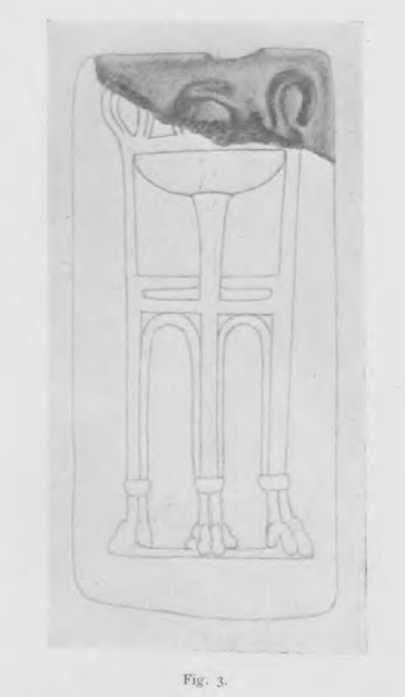 “An almost shapeless triangular fragment where it is difficult but certainly possible to recognize traces of the feet of the bull appearing on the two sides of the relative BULL-BULL quadrilateral (2). Weight gr. 58; cm. 3.6o x 2.50 x 1.10 thick.” (Machine translations)