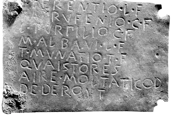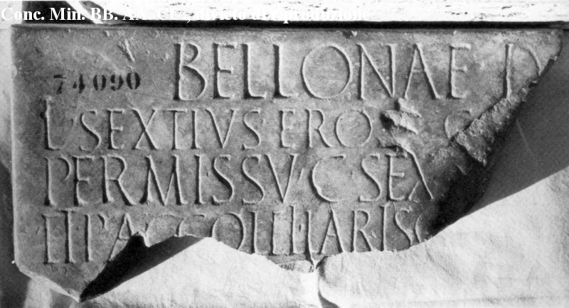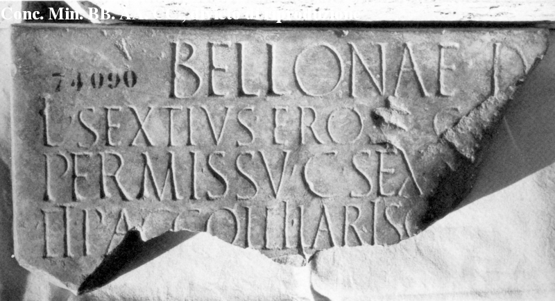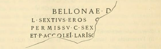 What does it mean? At first reading, It seems to be that this guy Eros wanted to make a dedication to Bellona and needed Accoleius and his colleague’s permission to do so. Our moneyer’s name is in the last line. Also notice the TALL Is which Grueber discusses as a means of indicating the long vowel sound. The stone itself is from Lanuvium.
