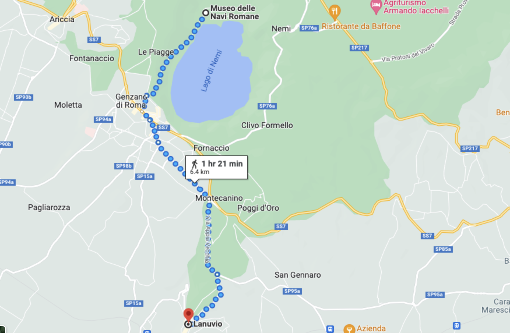 The Lanuvium makes sense once we look at the maps. Lanuvium is only about an hour and 20 minute walk away, and is the next nearest ancient community to the sanctuary after Ariccia.