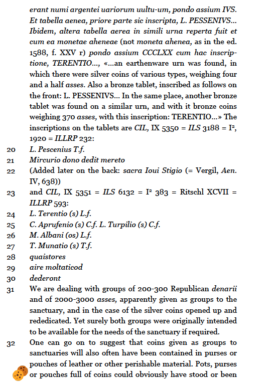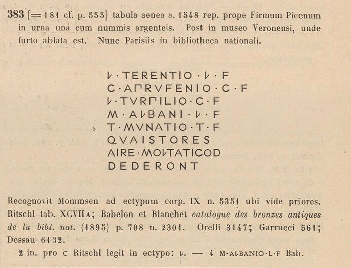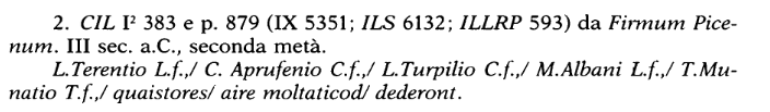 Extremely frustratingly I can’t find the inscription (yet!) in any of the typical epigraphic databases (I tend to start with Clauss/Slaby) and that seems supremely odd as it is clearly published. I also checked Coin Hoards and came up with zilch. My thought is if I can find a better publication of the inscription I might find the coin types. The next stop was to figure out what type of quaestors are making this offering: fines officers!