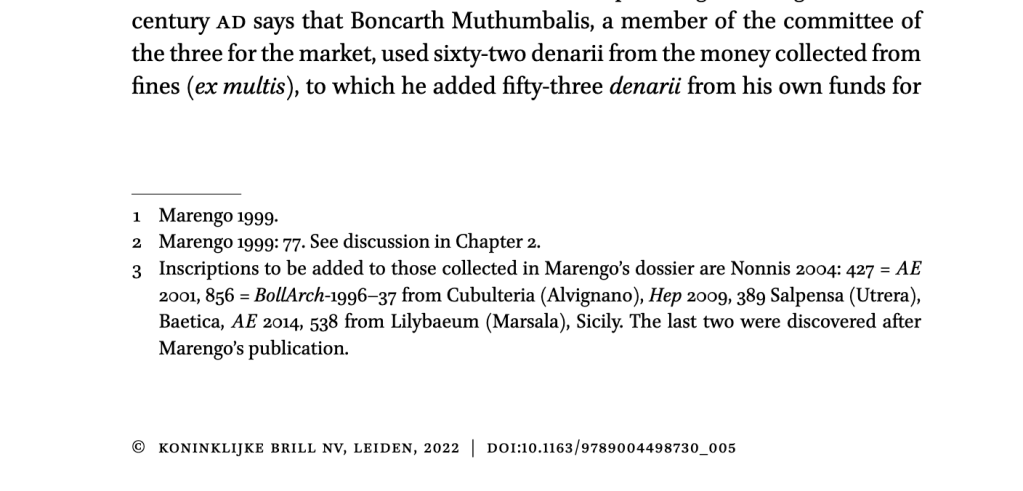 Marengo, Silvia Maria. “Le « multae ».” In Il capitolo delle entrate nelle finanze municipali in Occidente ed in Oriente: actes de la Xe rencontre franco-italienne sur l’épigraphie du monde romain : Rome, 27-29 mai 1996,. Collection de l’École Française de Rome; 256, 73-84. Roma: Università degli Studi di Roma La Sapienza, 1999. Which gloriously turns out to be open access!