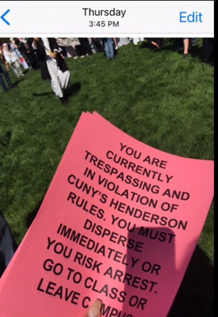 The NYPD liaison made clear in my hearing that a full dispersal was going to happen regardless of what the campus administration wanted because that is what had been ordered.