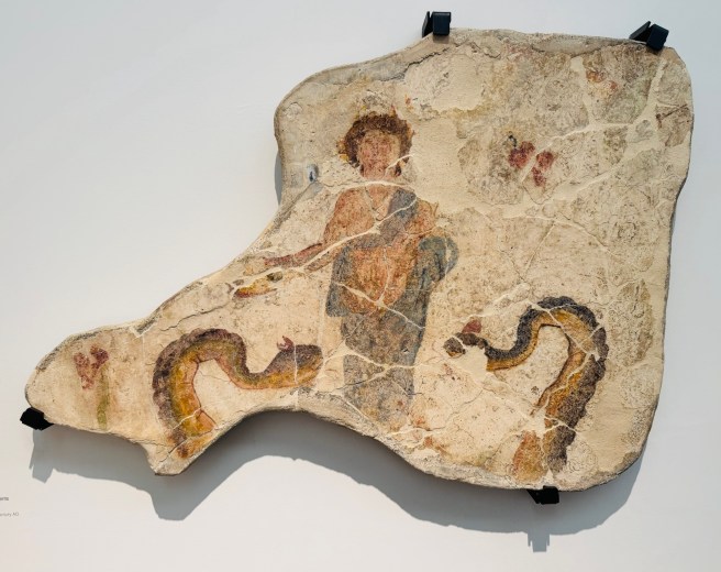 This little relief was not associated by the labeling with Christianity and of course in the story of Christ among the scholars of the temple he is always beardless as it is one of the v few canonical stories of his childhood. Yet… It is clearly of a type that had a deep impact on Christian art. I like that the notes are being taken in codices, perhaps waxed tablets with multiple ‘pages’. The hand gestures so well capture the depth of the disputes above which the central teacher quite literally rises on this little platform. His own hand gesture seems to be intent on calming the dispute with his gentle authority. Aesthetically I’m in love with this. I many need to blow it up, print it on say water color paper so as to even creatively colorize it for my office back on campus. Or it would make a great basis for a fantastical collage.