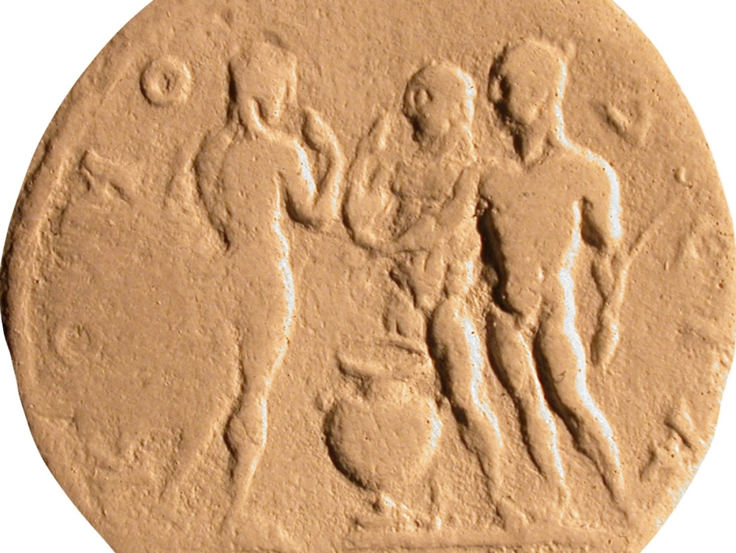 The relationship of iconography of a deity with “pebble” (ball) and urn to agonistic events is made clearest by this rather poorly preserved specimen.