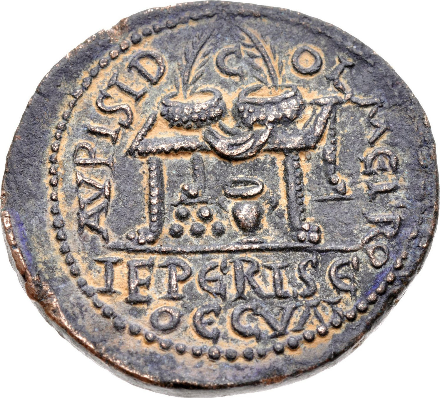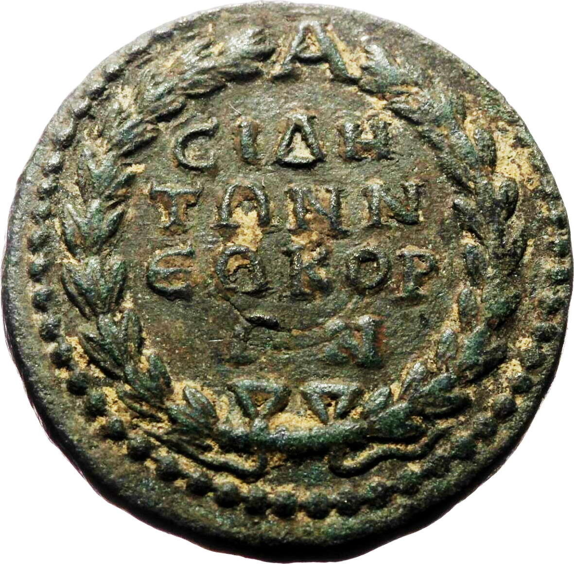 A tempting association of letters as indications of priority and associated with crowns comes from the coinage of Side. See the A at the center of the crown. Now the A on the coins of Side is their claim to be the first city among the Neocorates. It also appears on temple pediments, just hanging out in the legend, and on vexillum in coin designs, not just crowns.
