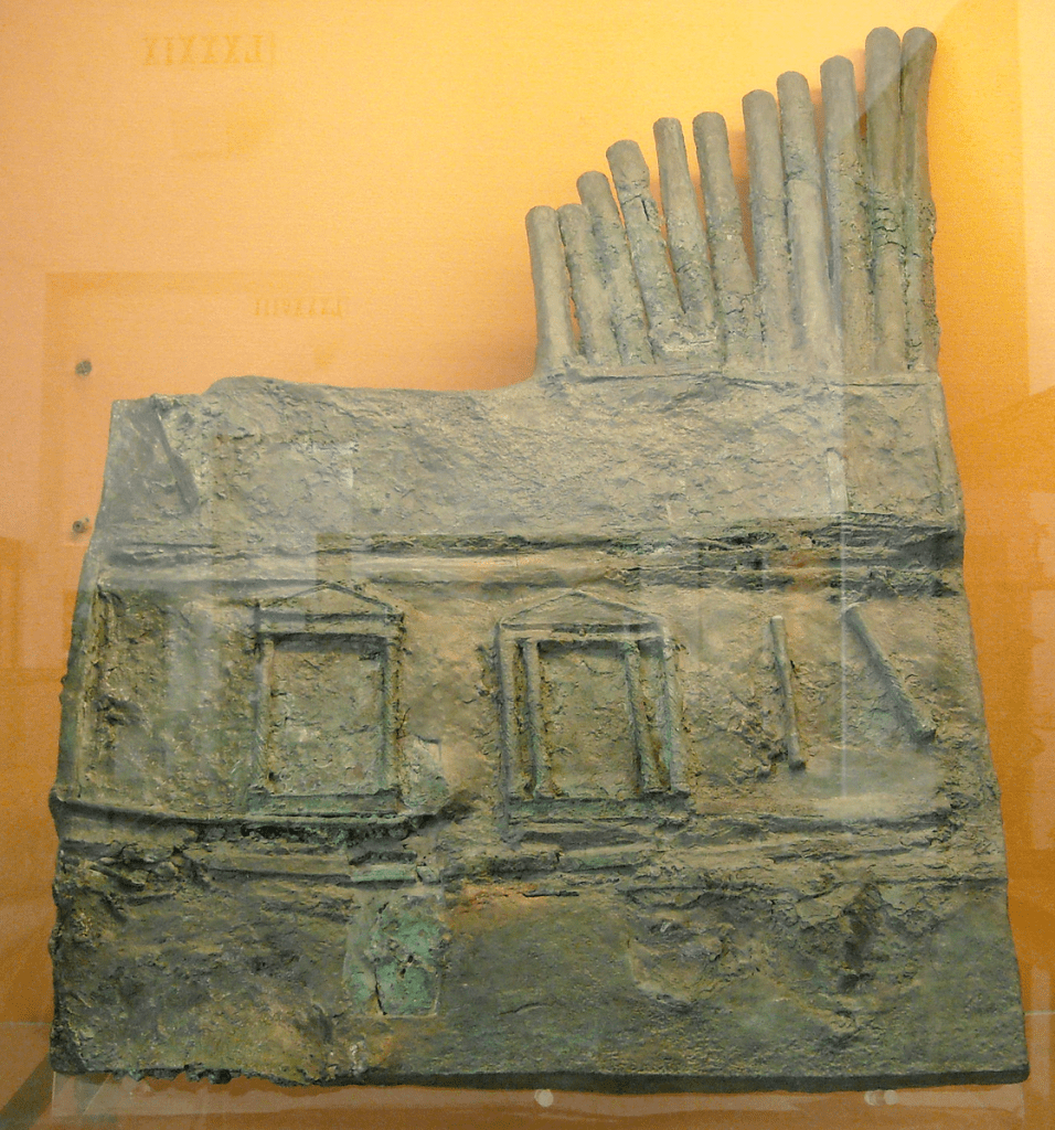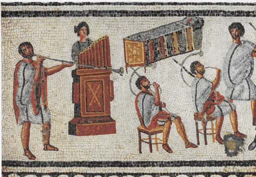 Partial surviving organ from Pompeii, the only real example I know of from antiquity (flickr – image source)detail from the Zliten mosaic, 2nd century CE (wiki commons)Nennig Villa Mosaic (wiki commons)Organ from Dion (wiki commons)found in Trier (reddit = image source)