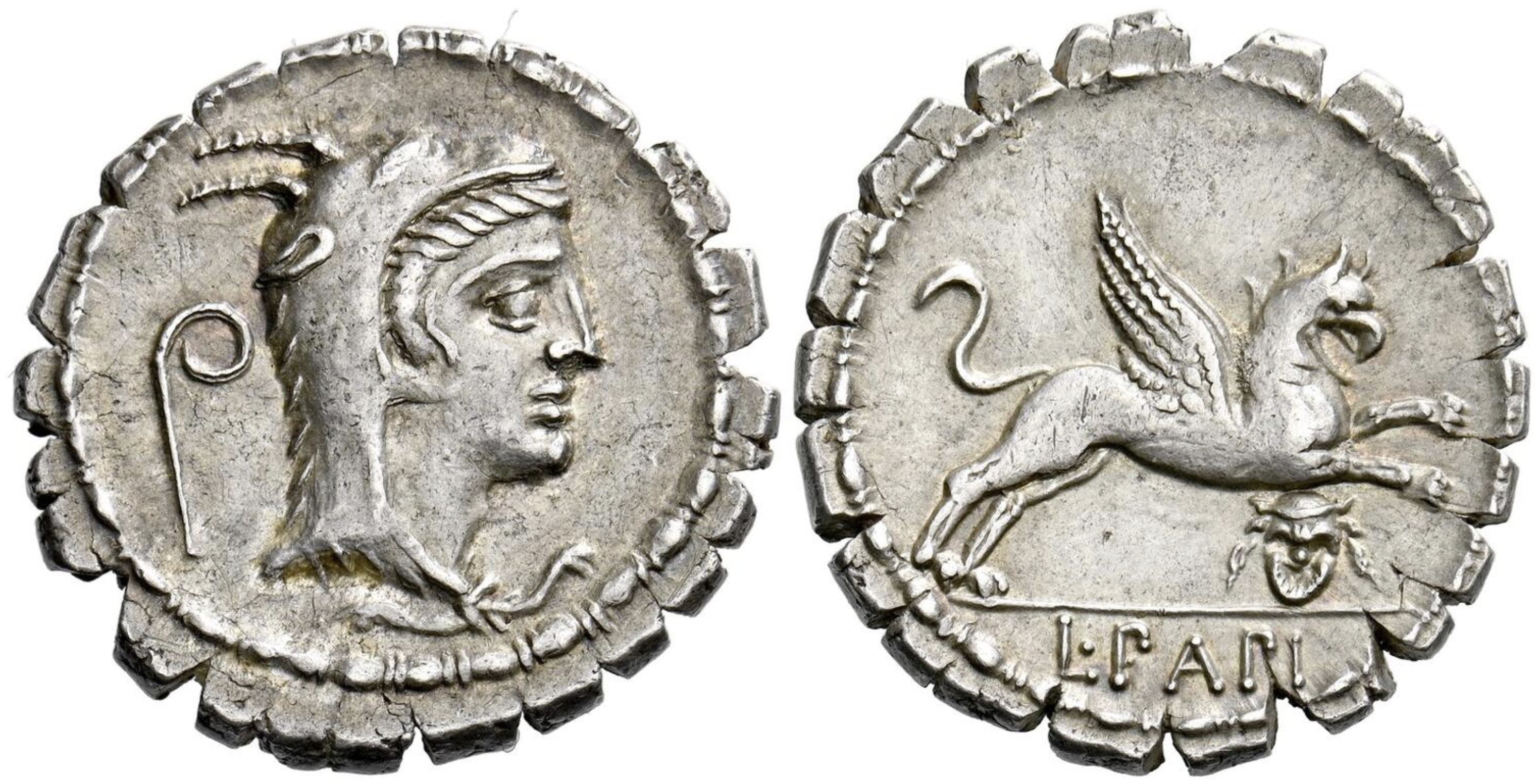 RRC 412/1 no. 180, specimen in trade (The same boots, mask symbol pairing also features on RRC 384/1 no. 210)