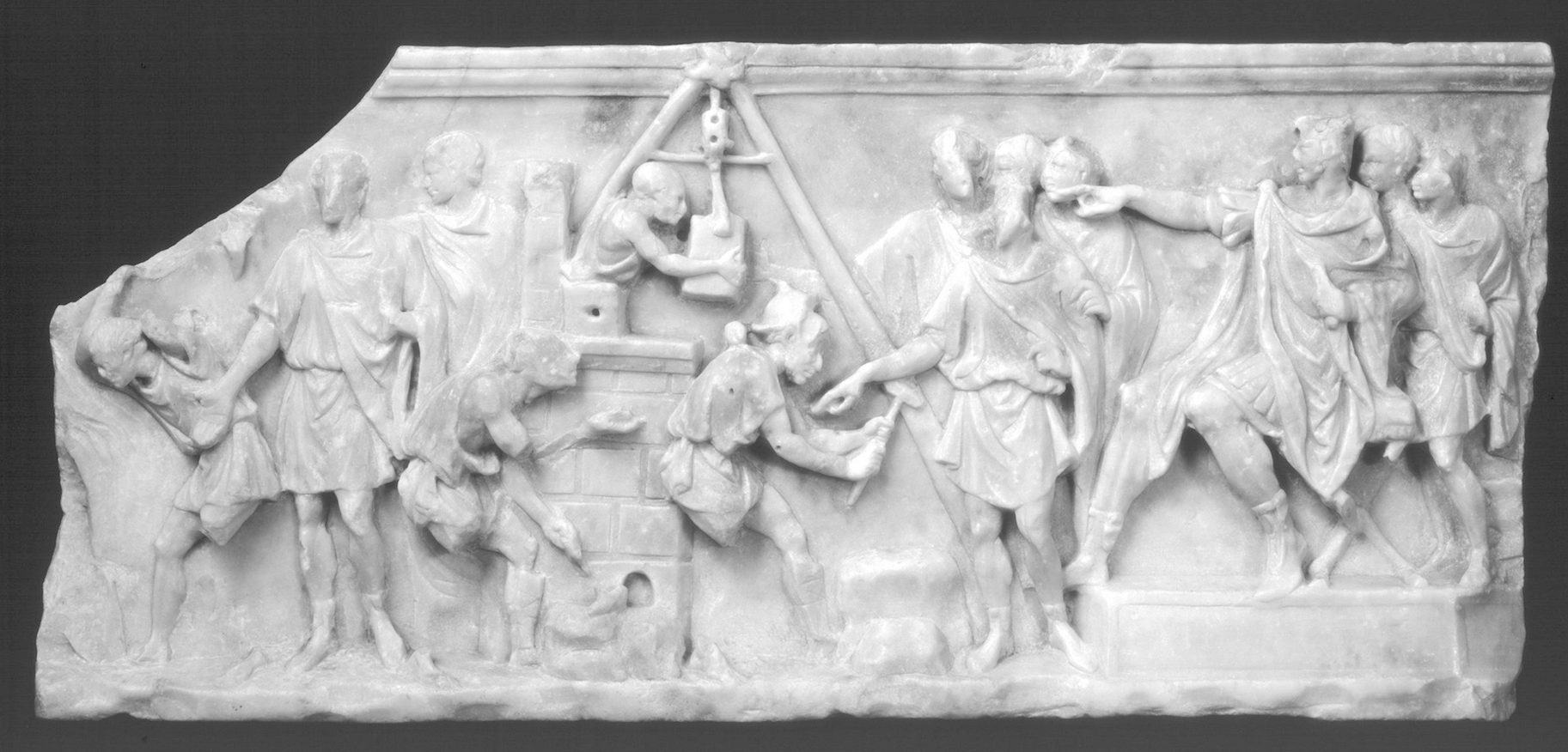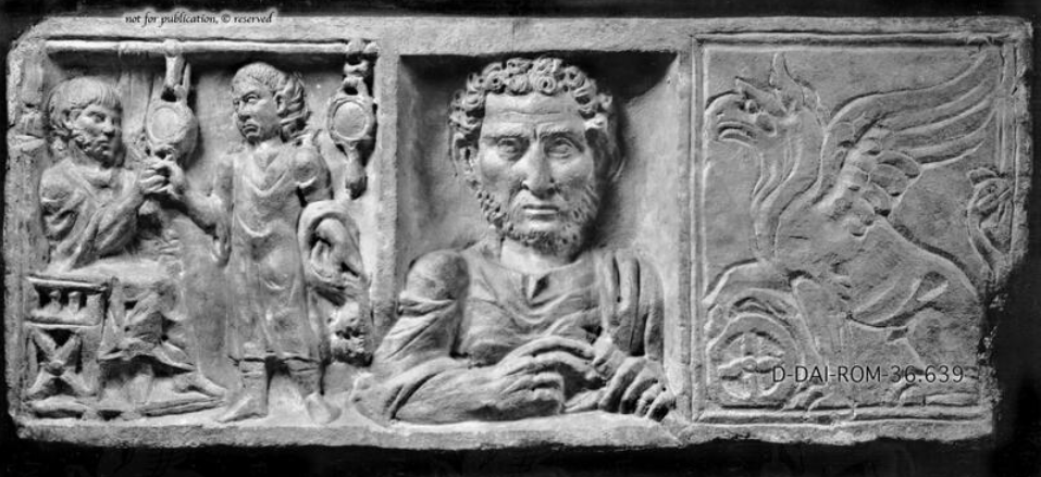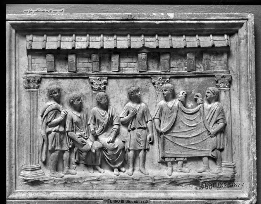 Roman funerary relief of wool merchant Titus Aelius Evangelus showing wool processing. Mid-2nd c.